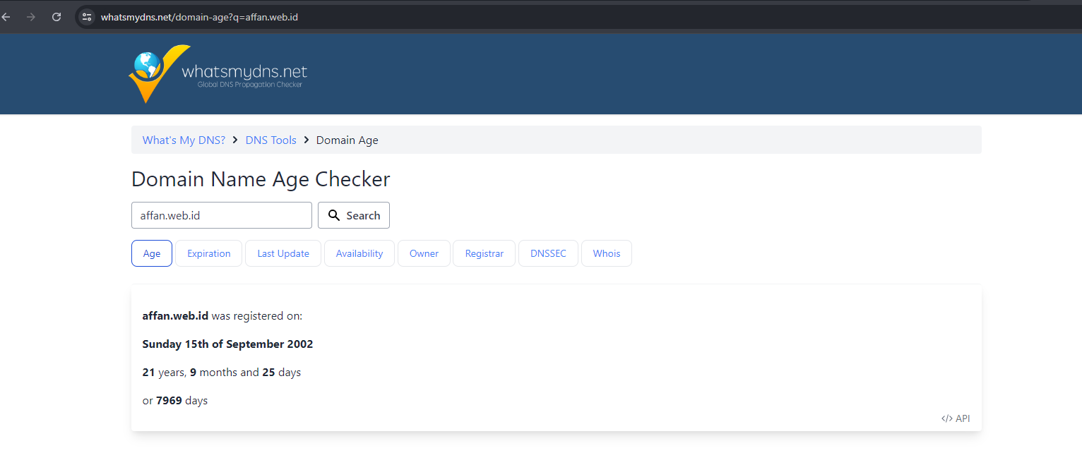 Sebagai contoh, anggaplah saya mempunyai dua buah domain misal affan.web.id yang didaftarkan di tahun 2002 dan yang satunya affan.id yang didaftarkan ditahun 2019. Sampai 3 bulan yang lalu, saya tidak pernah mempublikasikan konten sama sekali di kedua website tersebut.